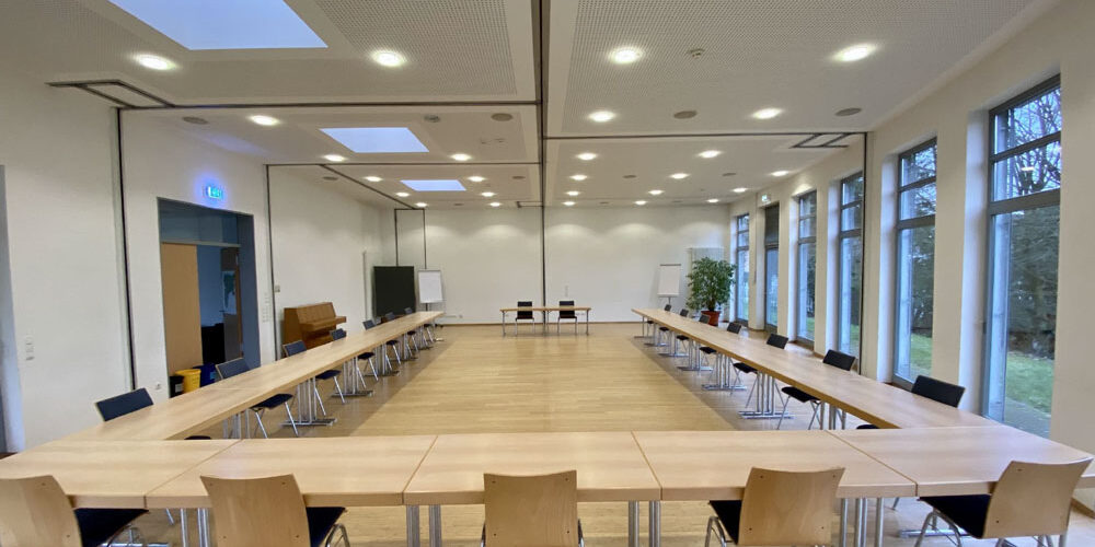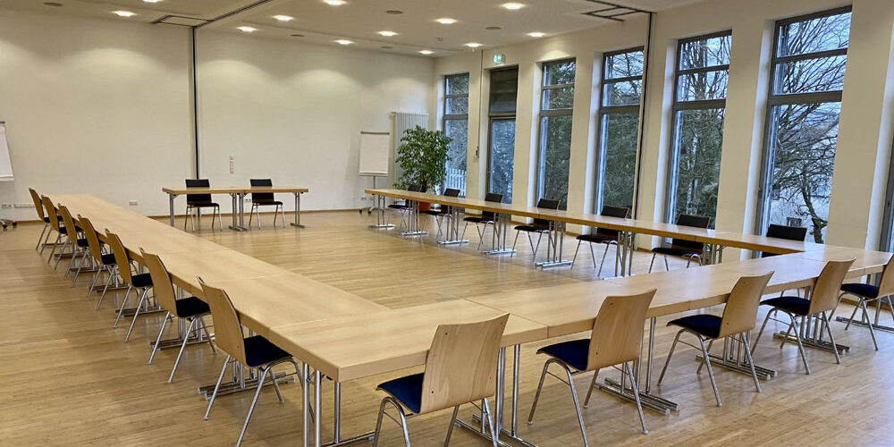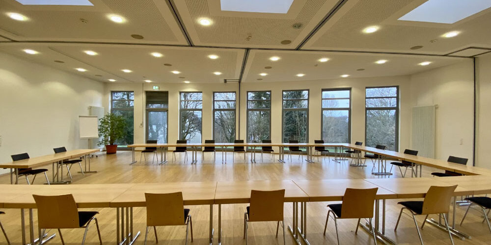 Das Haus verfügt über verschiedene, variable Konferenzräume für sechs bis 150 Personen, die technisch und funktional nach Ihren Bedürfnissen gestaltet werden können. Sie sind mit Flipchart, Stellwänden, z.T. Weißwandtafeln, Beamern, Lautsprecherboxen sowie Laptops ausgestattet. Alle Arbeitsräume und Zimmer sind mit WLAN ausgestattet. Klaviere erweitern die Nutzungen von Hörsaal und Großem Saal für musikalische Angebote. Kleine Nischen zum individuellen Rückzug und zum persönlichen Gespräch fördern die angenehme, kommunikative Atmosphäre im Haus.